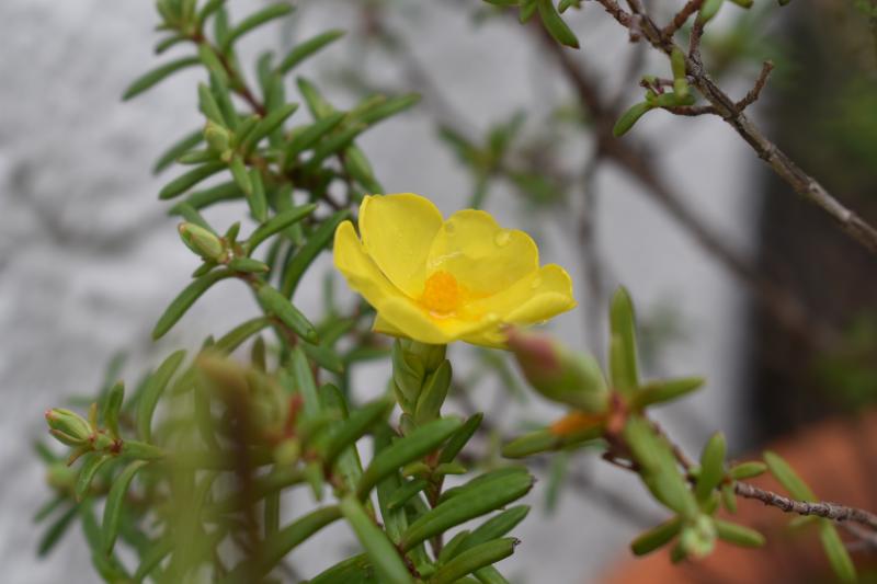 Es ließ mir keine Ruhe, musste nachsehen, ob hier nicht auch schon etwas blüht, Jawohl: Halimium umbellatum. Sitzt etwas beengt und würde sich wohl über etwas mehr Pflege freuen...im letzten Jahr sind viele Zweige verdorrt.