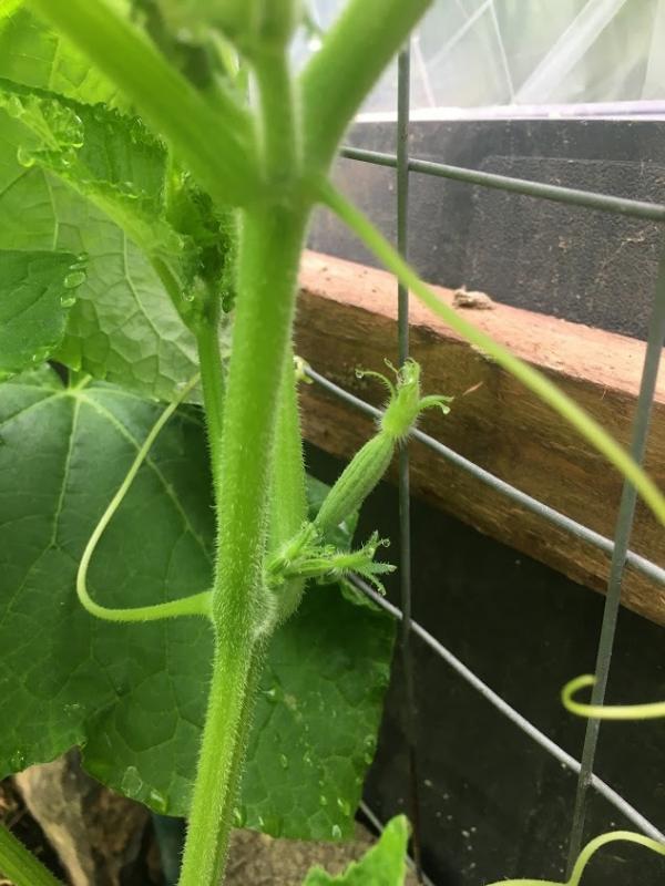 Ich freu mich schon auf die ersten Gurken. Ein Bisschen größer dürfen sie aber noch werden.