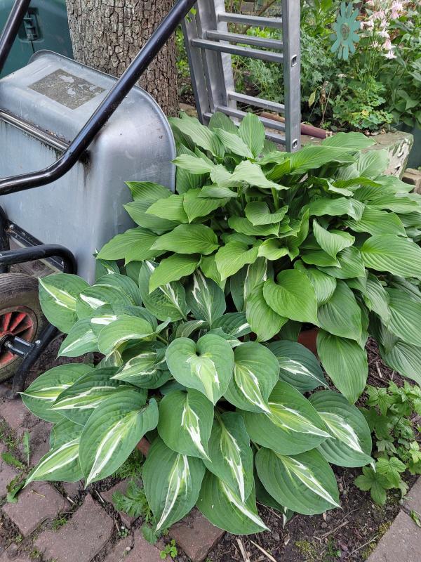 'Big Daddy' ist es nicht. Auch ihre jungen Blätter haben keine gewellten Ränder. Stattdessen sind sie stärker gehämmert und haben die typische, runde Schüsselform (Rand nach oben) und kleine Spitze. 'Blue Angel' habe ich nicht.Weidenkatz hat geschrieben: ↑3. Jun 2021, 10:05