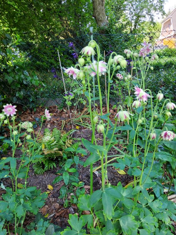 ich selektiere schon aus, was ich in welchem Bereich haben will. A. vulgaris in schwarzviolett in einem Beet mit viel grüngelb von Euphorbia und anderen, im Vorgarten gefüllte und clematisblütige in allen Farben, in einem anderen Beet alle Formen von blauviolett, teilweise gelblaubig. Die rot-gelben und die chrysantha haben auch "ihr" Beet. Ein Beet mit weiß-grünen (Green Apples samt Nachkommen) und 2 andere, wo alles hinkommt, solange es akzeptable Form und Farbe hat, aber ggf. auch farblich passend zu den Stauden daneben sortiert. Rosa kann ich leider nicht überall dulden ;D