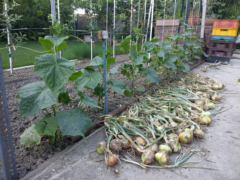 Ich mache die Seitentriebe unten weg, damit ich den Mitteltrieb fördere. Wenn die Gurken fruchten dürfen, lasse ich die Seitentriebe dran, kürze aber ein. Auf 1 Blatt, wenn das Wetter eher bewölkt ist, auf 2 Blatt, wenn es sonnig ist. Das alles soll dazu dienen, bei den überaus fruchtbaren parthenokarpen Sorten einen Überbehang und damit eine vorzeitige Erschöpfung der Gurkenpflanzen zu verhindern. Funktioniert ganz gut wenn man es gut macht und wirklich auf das Wetter achtet, dann gibts kontinuierliche Ernte, etwa 1-1,5 Gurken pro Pflanze pro Tag, wenn man sich etwas verschätzt hat oder anderes nicht stimmt kommt der Ertrag eher in Wellen, mal 5 Gurken auf einmal und dann 2 Tage nichts.