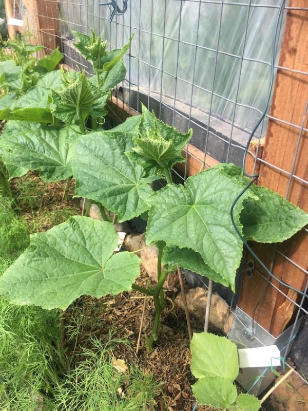 Ich freu mich schon auf die ersten Gurken. Ein Bisschen größer dürfen sie aber noch werden.