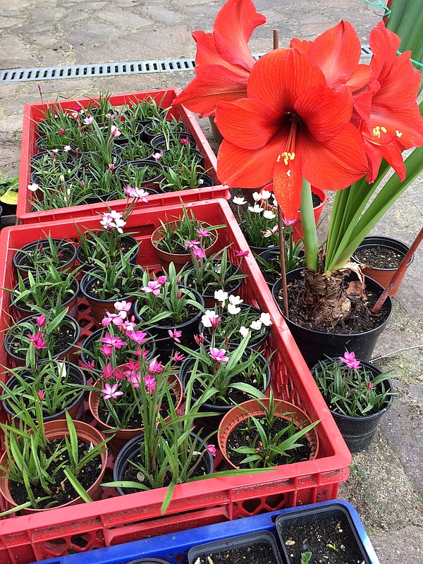Hier blühen welche in der Nähe von Salvia kusnetzowii. Damit es nicht etwa zu harmonisch wird, gibt es immer irgendwo noch einen Klatschmohn...