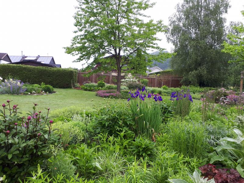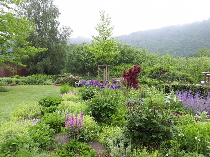 Dein Garten hat eine wunderbare Atmosphäre. Die wolkenverhangene Stimmung tut ein übriges dazu :D sehr schöne und vielfältige Kombinationen. Alles in allem sehr harmonisch.