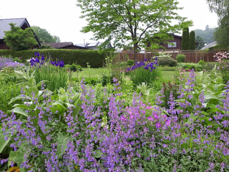 Auch hier dominiert das Dunkelblau von Iris sibirica 'Caesars Brother '. Aber die Päeonien sind schon in den Startlöchern. ;D