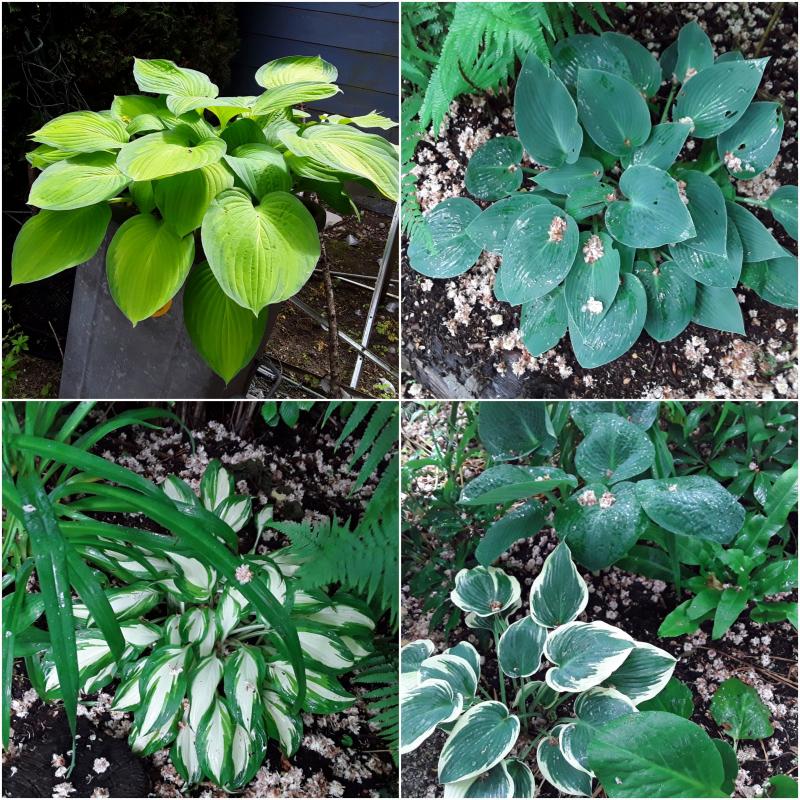 Viele Hosta sehen dieses Jahr richtig gut aus. Blick auf die eine Topfecke.