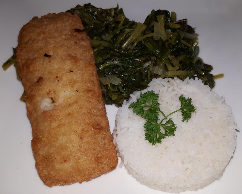 Bulgur mit Neuseelandspinat aus dem Walipini und dazu frischer Salat und Hähnchensteaks
