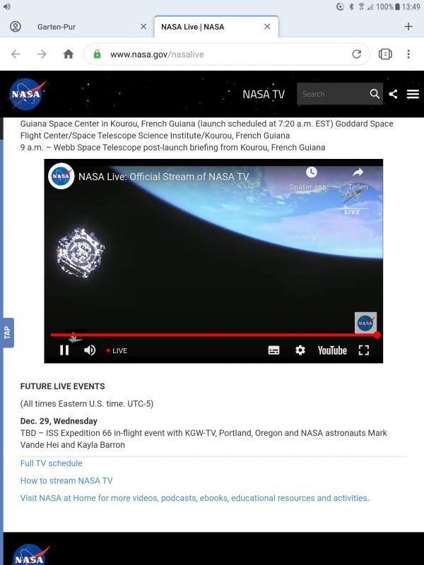 In 5 min startet die Arianerakete mit dem James-Webb-Teleskop.
