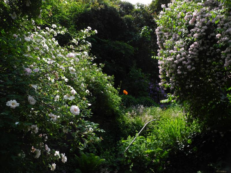 Crepuscule, war mal ein "Verreckerling". Ihre beiden Schwestern wurde am Pavillon der Winter 2012 zum Verhängnis, (da wo nun der weisse regen drüberhängt ;D). aber sie hat überlebt und drückt nun durch die Blütenlast den Obelisken auf die Seite