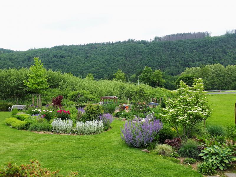 Der nächste Favorit ist das erste mit dem langen Band gelber Wiesentaglilien durch den Garten.