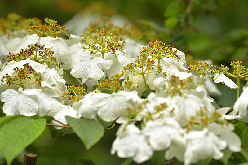 Viburnum p. 'Mariesii' steht gut da, andere wie der Etagen-Schneeball blühten dieses Jahr zurückhaltender...