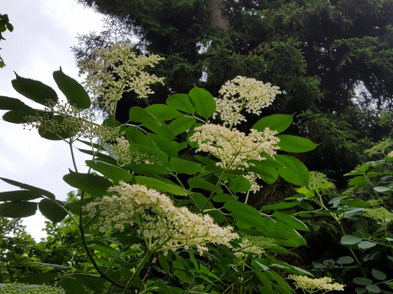 Hier blüht auch was in weiß , allerdings etwas leichter auszusprechen : Holunder.
