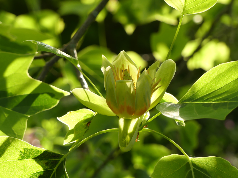Hier sieht man die Blüten der Liriodendron wegen der Höhe der Bäume leider auch erst, wenn sie auf dem Boden liegen.