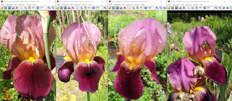 Auf die Gefahr hin, dass es keinen interessiert und ohne den Anspruch einer identifikation zeige ich hier mal den Vergleich einiger Iris die bei mir jetzt unter Pseudo-Chief laufen. Häwimädel hatte mit von ihrem "das ist nicht Indian Chief" im letzten Jahr Rhizome geschickt. Vom Blütezeitpunkt sind sie etwas hinterher aber das kann daran liegen dass sie so frisch gepflanzt ist. Ich werde sie weiter beobachten. ;D