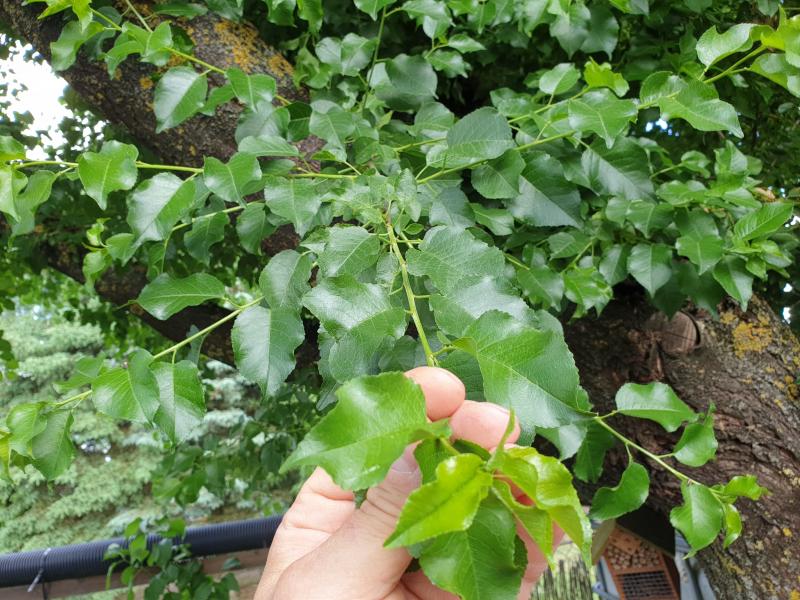 Da das Blattwerk sehr dicht ist, soll der Baum als Schattenspender, unveredelt stehen bleiben und ich kann mir da auch Ableger machen.