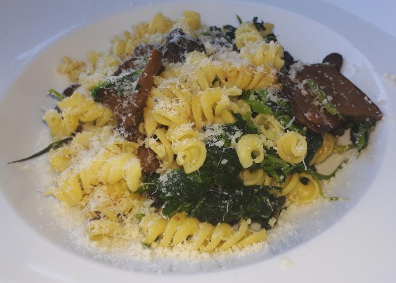 Spirelli mit Gartenspinat und getrockneten Austernpilzen