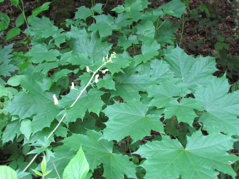 Am Wegrand ein paar Eisenhüte, zum Großteil abgesäbelt, deswegen nur ein paar geduckte Seitenrispen. Warum das- keine Ahnung. Da ich ihnen zusammen mit den Ritterspornen eigentlich entsagt habe, der Name von dem ich denke, dass er mal richtig war: Aconitum vulparia.