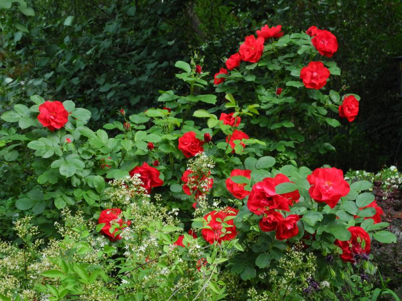 Hier ist es kurz vor dem Rosentraum.Das kalte,nasse Frühjahr hat uns arg zugesetzt und jetzt ist plötzlich der Hochsommer mit hohen Temperaturen ausgebrochen.Einige Rosensträucher sehen schon jetzt gestresst aus und haben gelbe Blättchen.