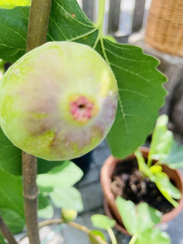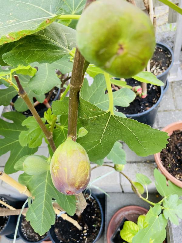 Ist eine Topffeige,hat einen sehr warmen und geschützten Platz,im Freiland wäre sie noch nicht soweit, Herbstfeigen konnte ich vom Mutterbaum schon paarmal verkosten, waren recht gut,wie die Brebas schmecken muss sich noch zeigen.