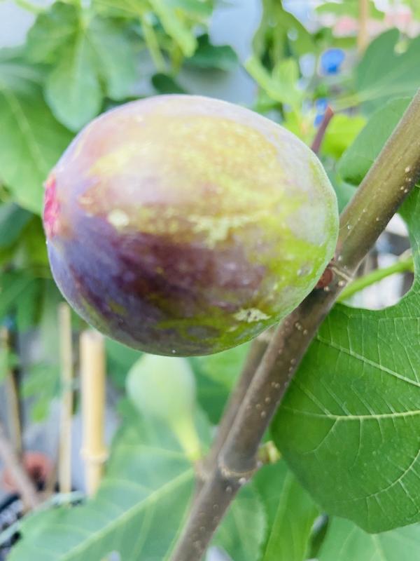 Ist eine Topffeige,hat einen sehr warmen und geschützten Platz,im Freiland wäre sie noch nicht soweit, Herbstfeigen konnte ich vom Mutterbaum schon paarmal verkosten, waren recht gut,wie die Brebas schmecken muss sich noch zeigen.