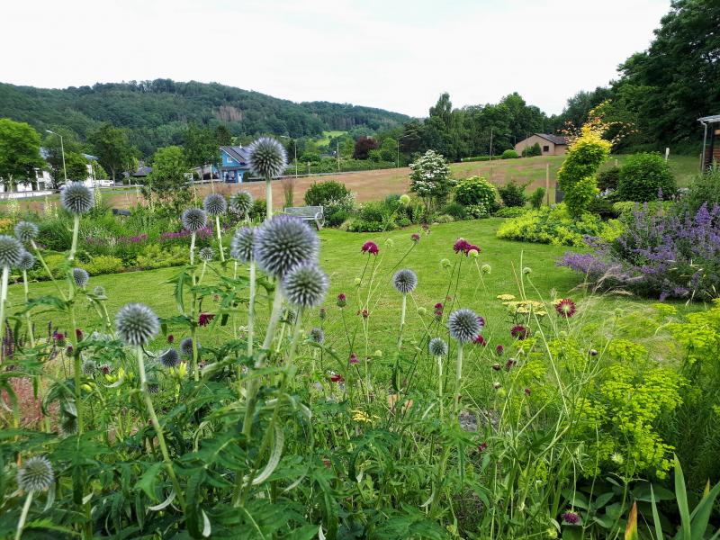 Echinops bannaticus 'Taplow Blue' übernimmt den blauen Part... wenn auch deutlich dezenter. ;)