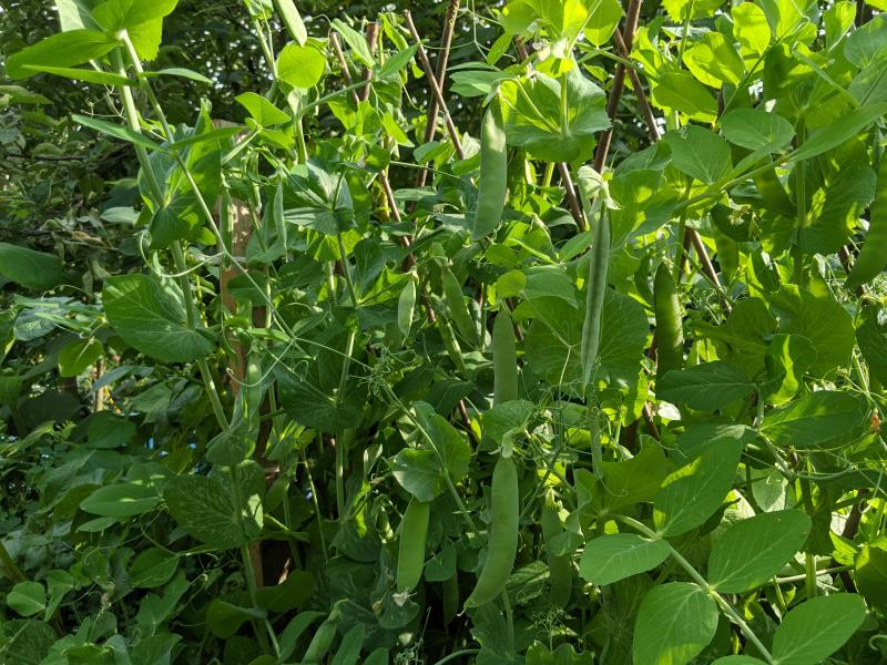 Zuckererbsenschoten hab ich heute schon eine große Portion geerntet, da kommen aber wieder welche nach. Hab auch ein paar Amerikanische Sorten die hoch wachsen.