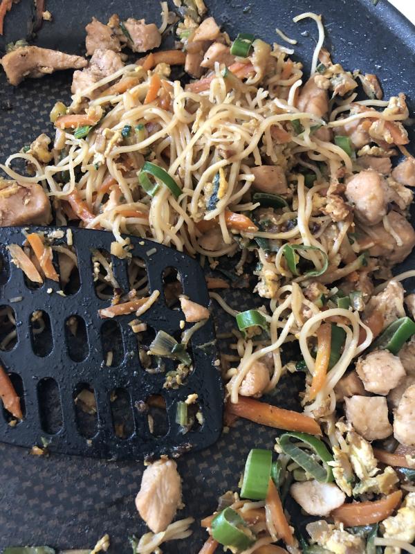 Und von heute kann ich nur die Reste in der Pfanne zeigen - es gab chinesische gebratene Nudeln