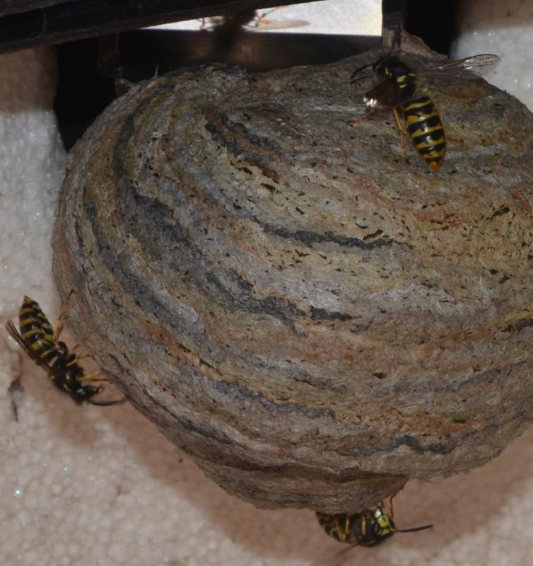 Ich tippe auf V. germanica. Du müsstest das Kopfschild dir genau anschauen. 3 Punkte= germanica, Anker " V. vulgaris. Etwas anderes , müsste man dann nochmal recherchieren. Aber der Kopf von vorne hilft weiter. Evtl. eine mal mit Glas o.ä. fangen und anschauen. Wir hatten früher ein Bienenköniginnenfanggerät. damit geht es auch leicht, wenn man schnell ist.