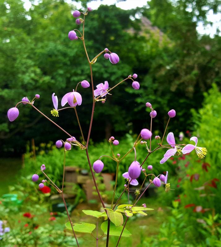 In einer anderen Gartenecke blüht t. aquilegifolium " Nimbus White "