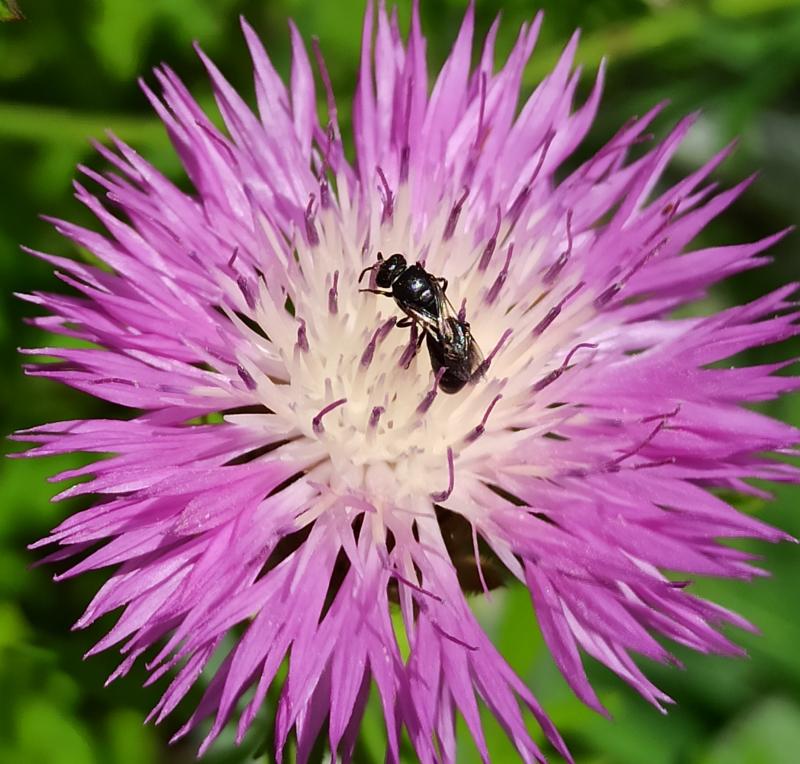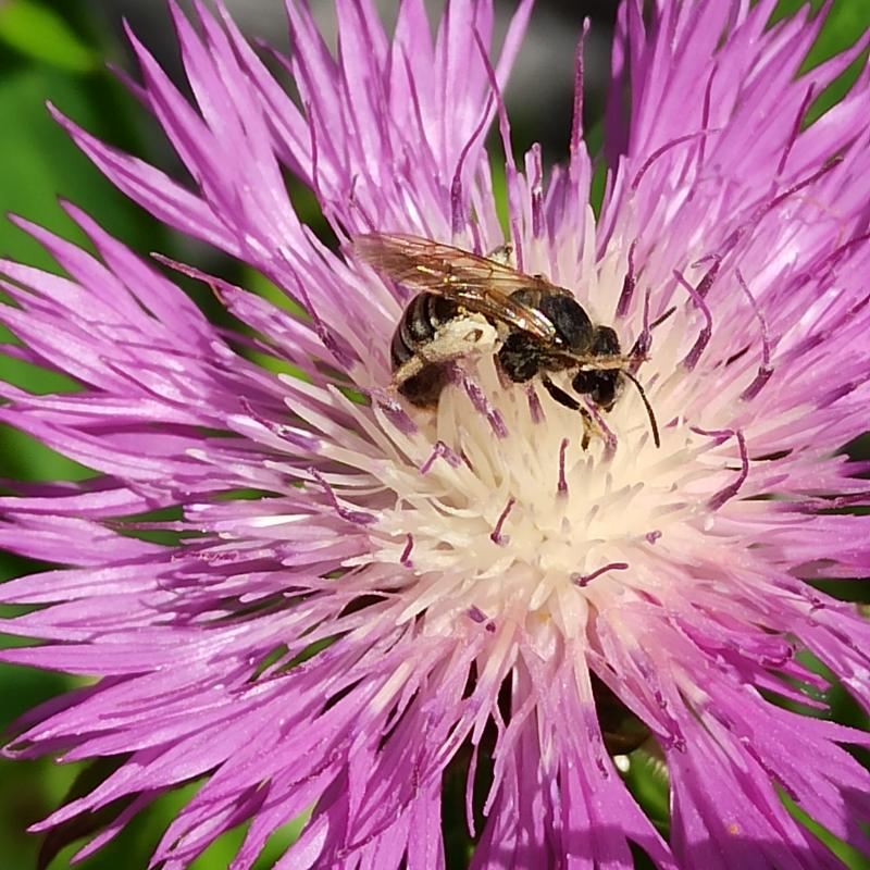 Hier ist Centaurea weiterhin begehrt, Halictus scabiosae in großer Zahl: