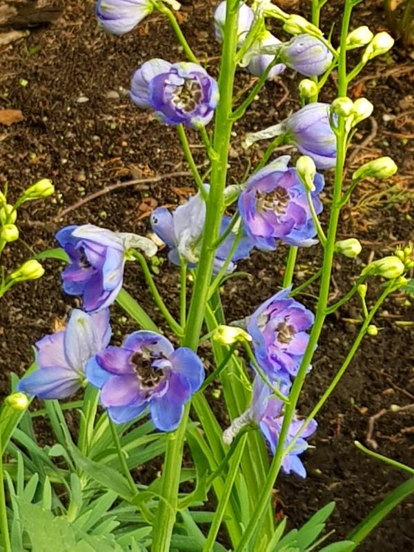Endlich letztes Jahr wieder eine von Klose gezüchtete Sorte erworben Delphinium elatum 'Harlekin' . Sie bringt dieses Jahr vier kräftige Stängel und Schnecken gehen nicht an sie dran.