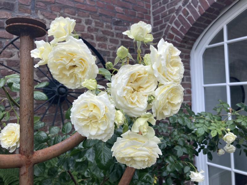 Nach dem vielen und starken Regen aktuell liegt er trotzdem so sehr nieder, dass wir überlegen, ihn zu roden und stattdessen einen Baum zu pflanzen. Leider. Die Blüten sind zu Beginn sie schön, später werden sie irgendwie flach, aber das ist nicht der Grund so eine schöne Rse zu entfernen.