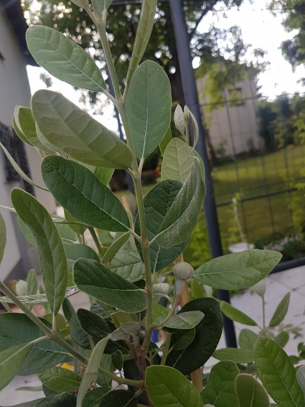 Irgendwem hab ich unlängst in irgendeinem Topic ein Gesamtbild von meiner großen Feijoa Pflanze versprochen. Hier ist das Foto.