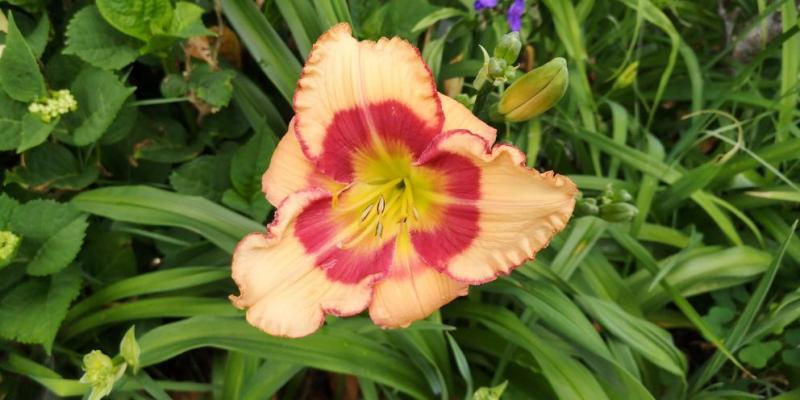 ... und ein erfreulich früher eigener Sämling :) Pfennigparade und Spring Purple sind beide in der Blüte zu erkennen. Leider hat sich der kippelige Stängel von Spring Purple in diesem Sämling durchgesetzt.