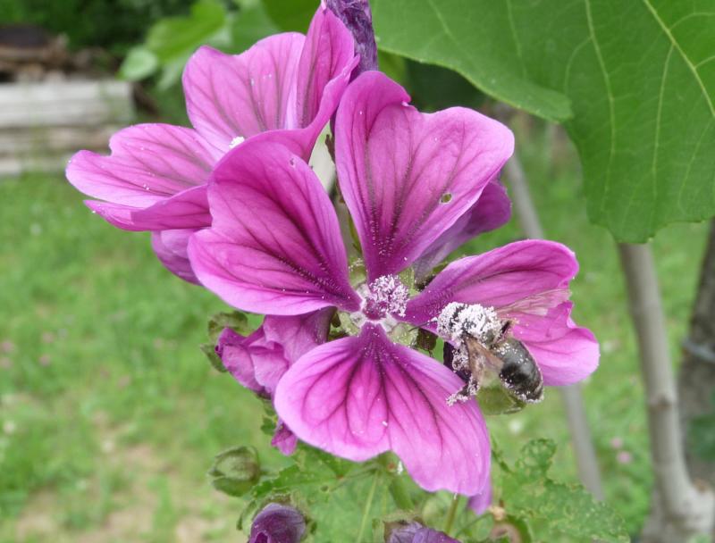 die Biene war gestern mein Star. So lustig.... Übervoll mit Pollen aber fliegt trotzdem weiter von Blüte zu Blüte und lässt sich nicht von mir (Foto) stören..... zu cool 8)