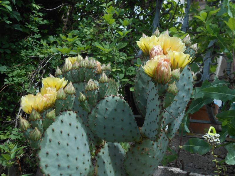 Diese "Superopuntie" hat begonnen, ihre Blüten zu öffnen. So was hatten wir noch nie, sie wächst in unserem Eidechsenrevier.