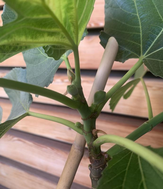 Vor zwei Jahren gab es 2 hervorragende dicke, gelbgrüne Herbstfeigen. Dieses Jahr hat sie 2 Blütenfeigen angesetzt, die sicher bald soweit sind und mehr als 10 Herbstfeigen
