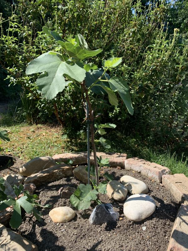Jetzt sieht sie so aus und es haben sich mehrere Feigen gebildet die gute Chancen haben im September pflückreif zu sein.