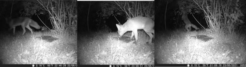 Hier am Haus stehen Mörtelkübel für den Schnellkompost. Da hab ich auch die Mäuse, die von unseren Katern erledigt worden sind reingeschmissen. Als mir auffiel, dass der Kompost am nächsten Tag durchwühlt war, habe ich einen Fuchs vermutet.