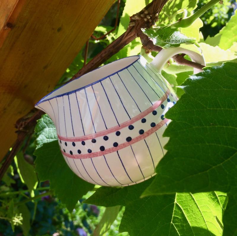 P.s. Der im Wein hängende Krug gefällt mir sehr. Und ich bin ein bekennender Kännchen und Kannen Zweckentfremder. Manchmal mache ich auch Milch oder Eistee rein...