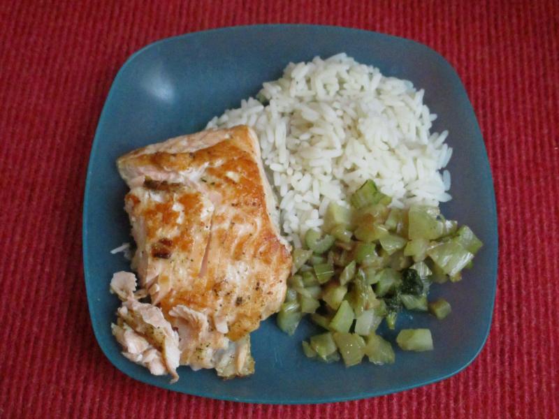 Hier gab es Lorbeerreis mit Fenchel und Lachsfilet.