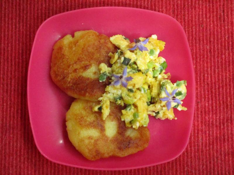 gebratener Kloßteig mit Frühlingszwiebelrührei