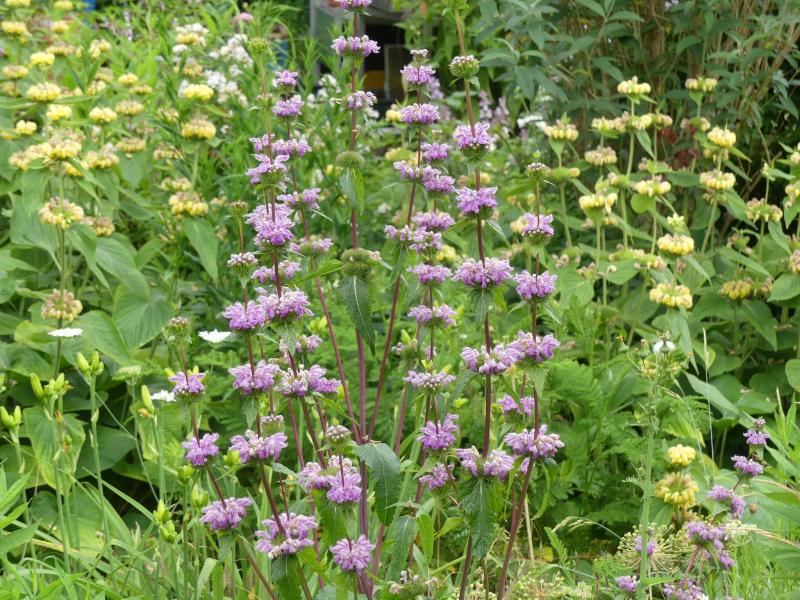 Im Vordergrund ein Pfeifenstrauch 'Belle Etoile'duftet sehr stark.