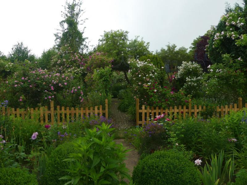 Hier eine Ansicht von einem eh schon hochgebundenen Rosenstrauch,davon gibt es diverse Varianten,mal auf Seite ,mal ausgebrochen.