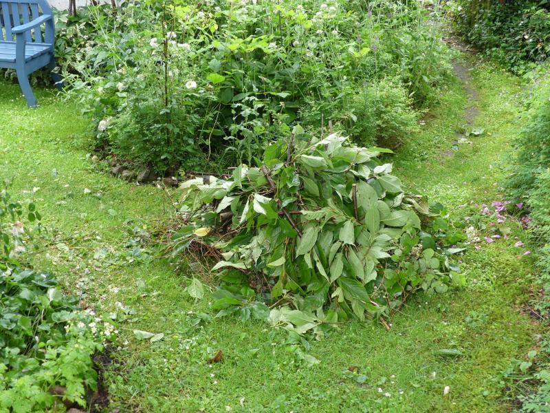 Vielleicht sieht man es nicht wirklich,aber die Goldgleditschie hat einen großen Schaden.Da liegt jetzt auch Bruchholz übereinander.Mal sehen,was ich da machen kann,
