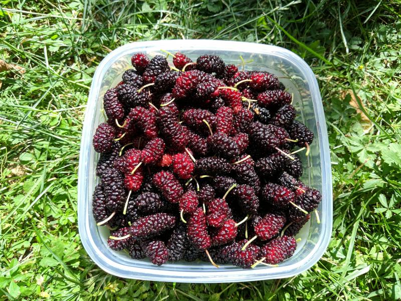 HA! Da kann ich mithalten. 1 Maulbeere ;D (zählt wohl als Probierfrucht, Mini-Busch letztes Jahr gepflanzt).