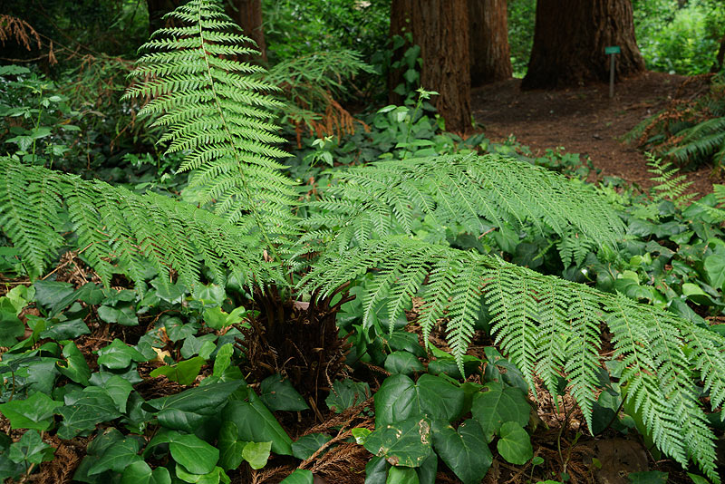 Da Farnwetter, schießen einige enorm ins Kraut (Polystichum munitum, Osmunda regalis, die Straußenfront etc.).