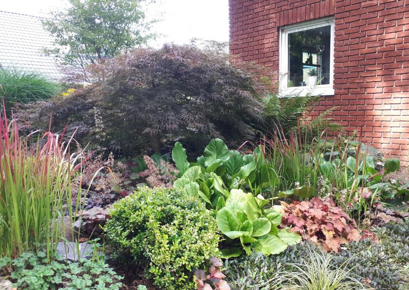 In meinem Vorgartenbeet hat sich wohl eine orangerote Tiarella mit einer dunkelrotlaubigen Heuchera gekreuzt und ausgiebig versamt. Ist doch botanisch möglich, oder nicht ??? Ich bin heute so begeistert von einem knallroten Abkömmling, daß ich Euch diese Sämlings- Parade mal zeigen möchte. :D Hier das öfters schon gezeigte Beet, der Genpool sozusagen. ;D