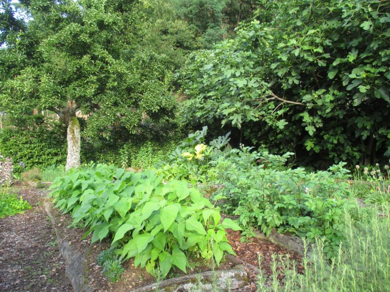 Bohnen, Kartoffeln und Zucchini unter Feigen.