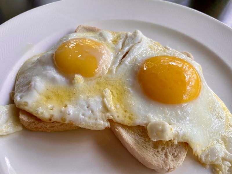 hier gab es zum späten frühstück toast mit spiegeleiern (eigentlich: setzeiern)